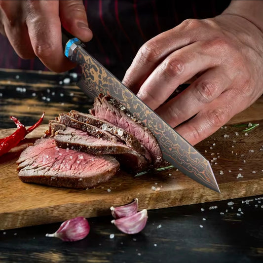 Unique Professional - Handgefertigtes Kiritsuke - Kupfer Damastmesser
